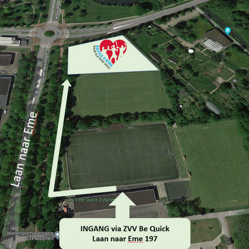 Aan de Laan naar Eme 97 is de entree naar ons trainingsveld. Vanaf de ingang van voetbalvereniging Be Quick volg je deze borden: