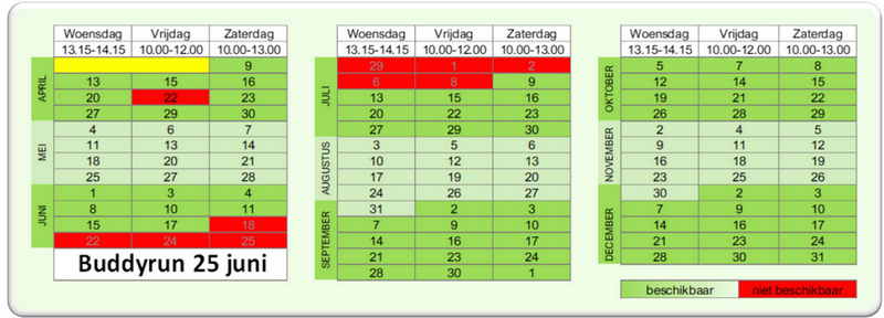 Op de trainingslocatie zijn voorzieningen zoals wc’s en douches voorzien. Buddy’s kunnen hier ook trainingen volgen. Hiervoor wordt momenteel een trainingsprogramma ontwikkeld. Zodra dit gereed is wordt de website aangepast en zullen wij dit ook kenbaar maken via onze social media kanalen.
